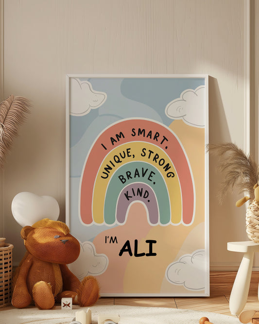 Rainbow Name — Personalized Kids Poster (Pastel Pink)